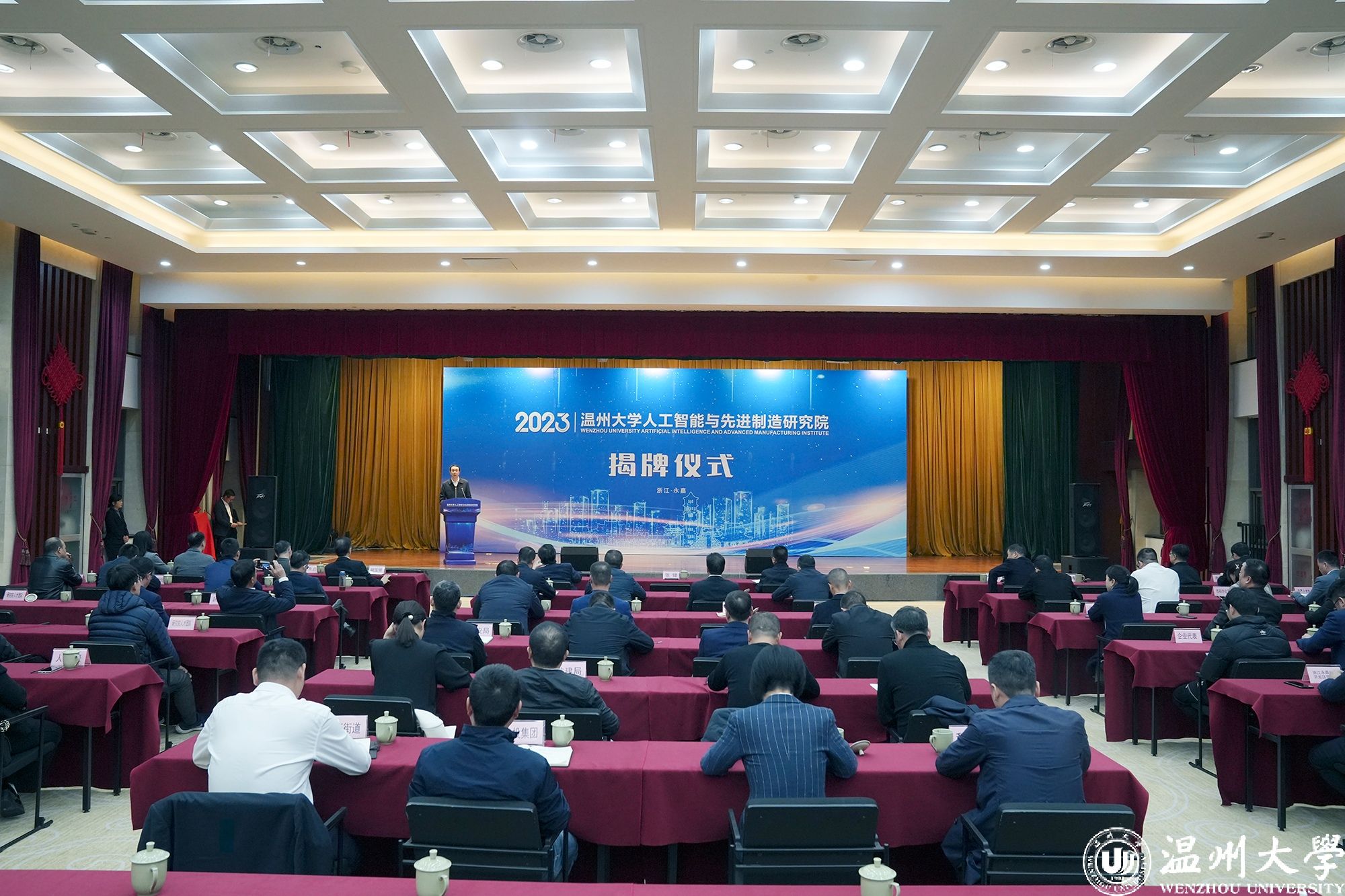 On December 8th, the inauguration ceremony of Wenzhou University's Institute of AI and Advanced Manufacturing was held in Yongjia. Wenzhou University's Party Secretary, ZHANG Jian, Vice President CAI Shuguang, along with Yongjia County's Deputy Party Secretary and County Mayor, WU Chengqian, attended the event. Representatives from the university's local cooperation office and the College of Computer Science and Artificial Intelligence were also present.