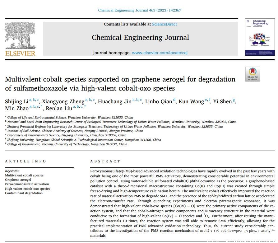 相关研究成果发表于《Chemical Engineering Journal》(SCI一区TOP期刊,IF = 16.7),国产自拍为第一通讯单位,生命与环境科学学院2020级硕士研究生李时菁为第一作者,赵敏教授和刘仁兰博士为共同通讯作者,相关工作由国家自然科学基金(22006117,61871293),浙江省自然科学基金(LQ20B070012,LQ20B070010),国家重点研发计划(2022YFA3702103)资助。