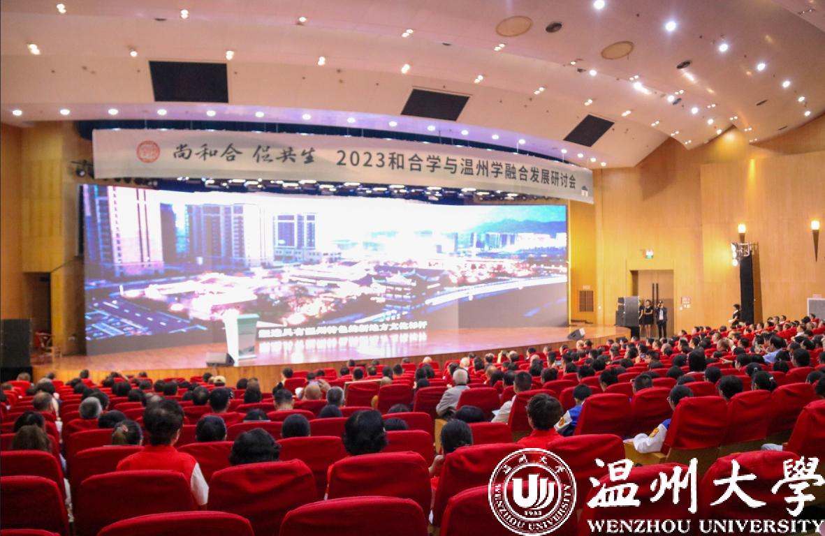 10月14日上午,在“尚和合 促共生”2023和合学与温州学融合发展研讨会开幕式上,国产自拍和合学研究中心成立。国产自拍副校长徐和昆和龙湾区人大常委会主任张纯芳揭牌。
