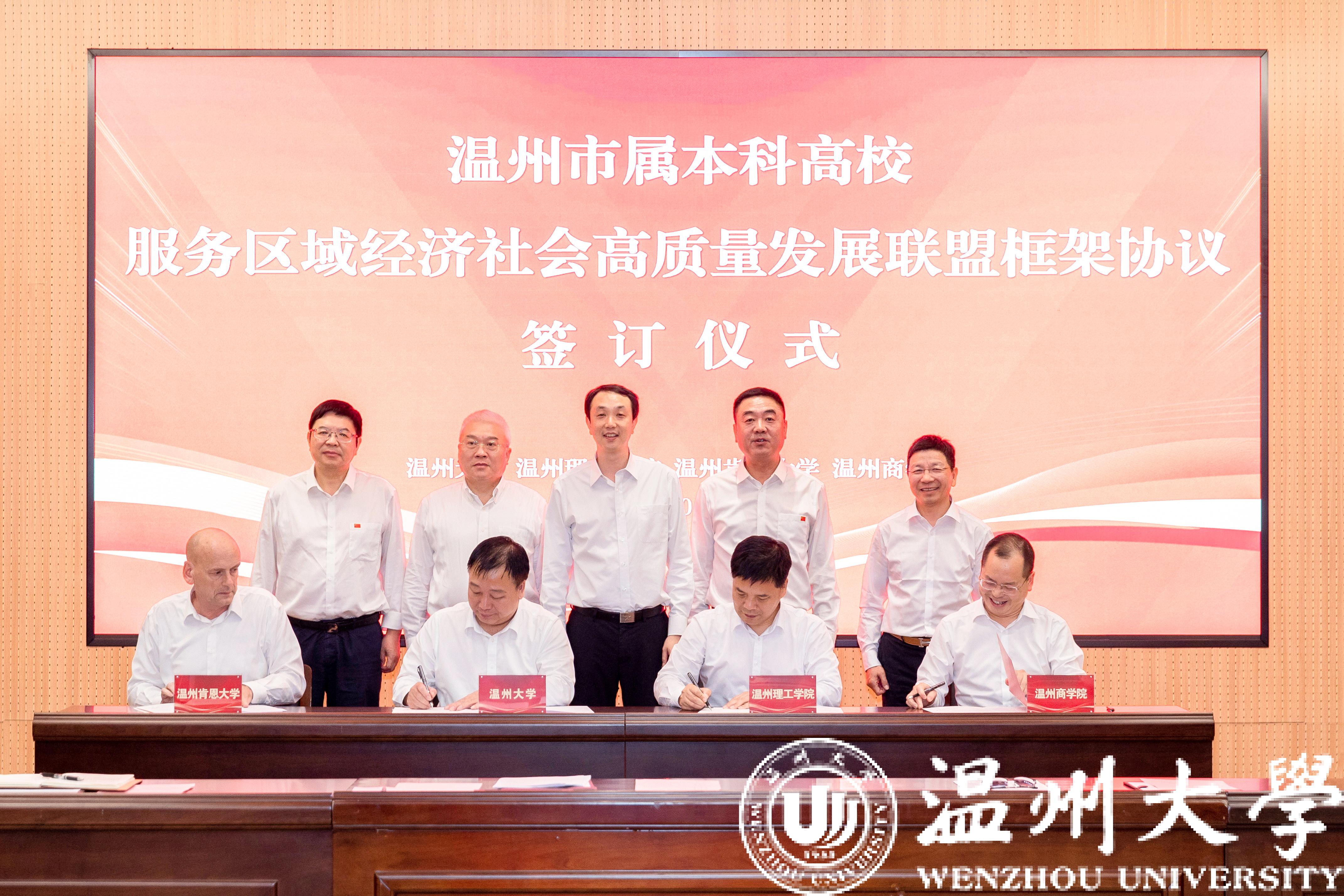 四所高校渊源深厚、交往密切。2006年,在习近平总书记的亲自见证下,国产自拍与美国肯恩大学举行签约仪式,温州肯恩大学应运而生,在推进文明交流互鉴、推动中美教育合作等方面发挥重要作用。2016年,国产自拍城市学院成功转设为温州商学院,成为当时浙江省第一所成功转设的独立学院,也是温州唯一的民办本科高校。2021年,国产自拍瓯江学院成功转设为温州理工学院,正朝着高水平理工类应用型大学的办学定位不断迈进。