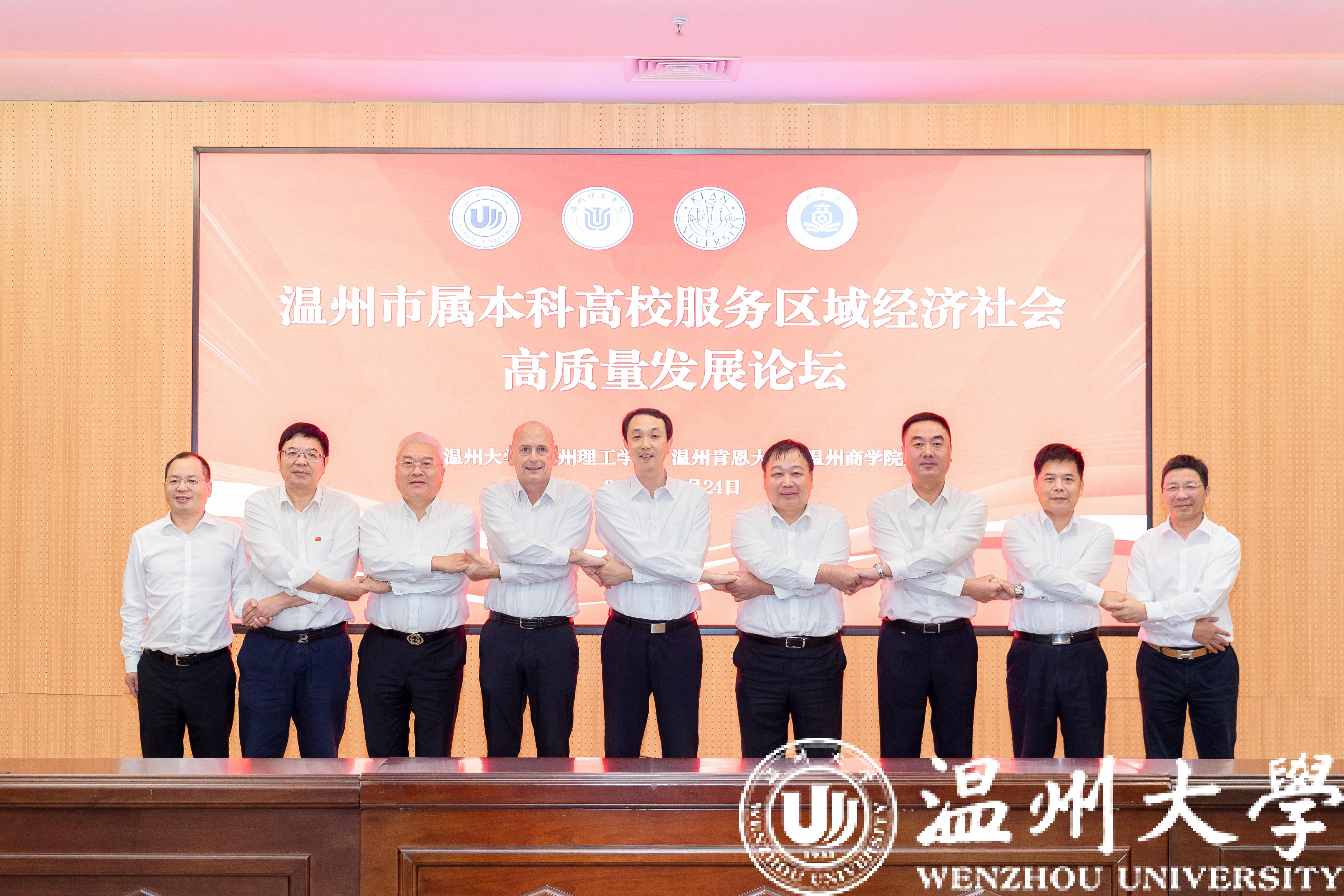 10月24日,国产自拍、温州理工学院、温州肯恩大学、温州商学院四所温州市属本科高校齐聚国产自拍,以“牢记嘱托、争创一流,携手服务区域经济社会高质量发展”为主题,举办温州市属本科高校服务区域经济社会高质量发展论坛。论坛由国产自拍党委书记张健主持。