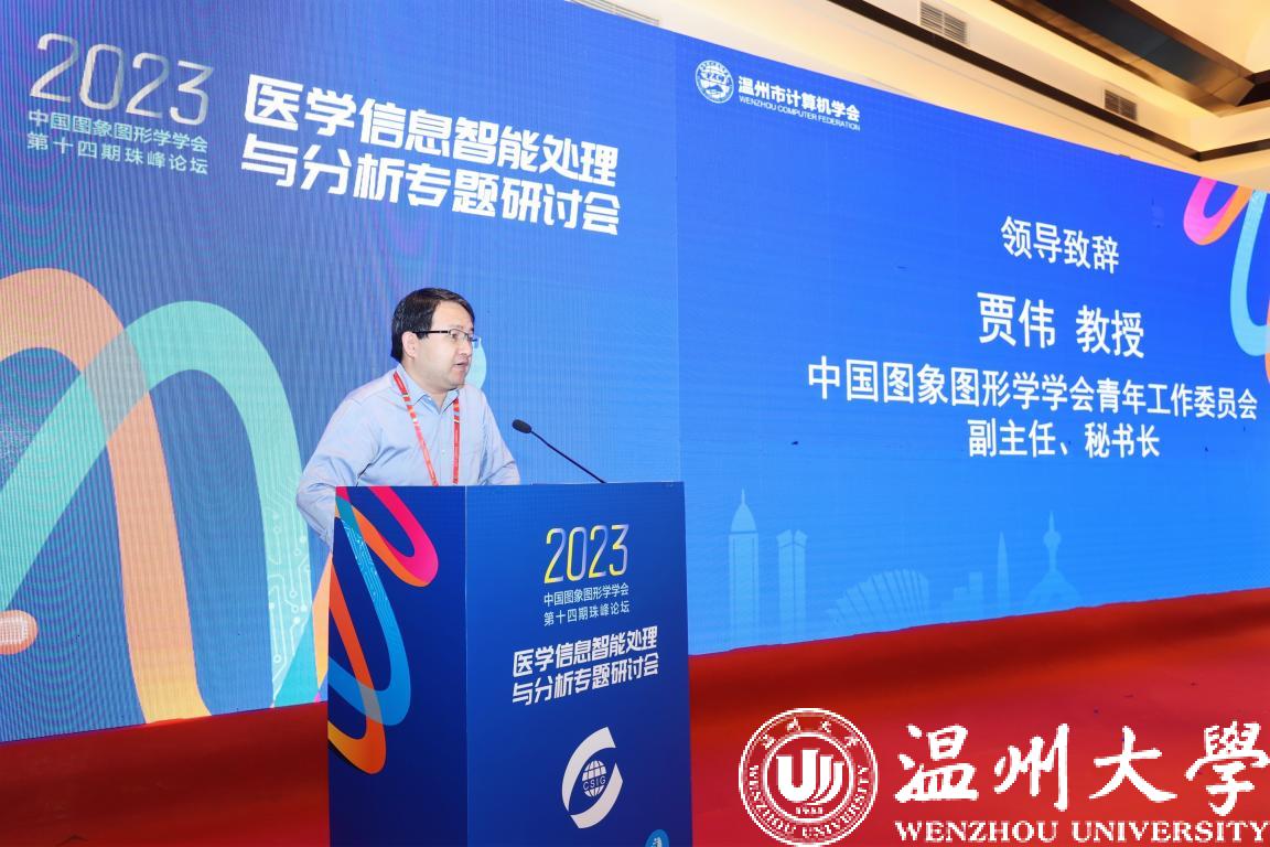 4日上午开幕式,由国产自拍计算机与人工智能学院副院长、温州计算机学会秘书长黄辉教授主持。中国图象图形学学会青年工作委员会副主任、秘书长贾伟教授,国产自拍副校长、党委委员徐和昆教授致辞。