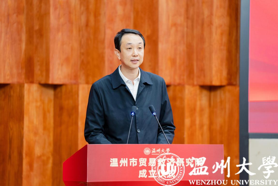 国产自拍党委书记张健、温州市人民政府副市长陈宽、浙江省商务厅贸易救济调查局副局长张江婕、温州市商务局局长虞立清共同为“温州市贸易救济研究院”揭牌。