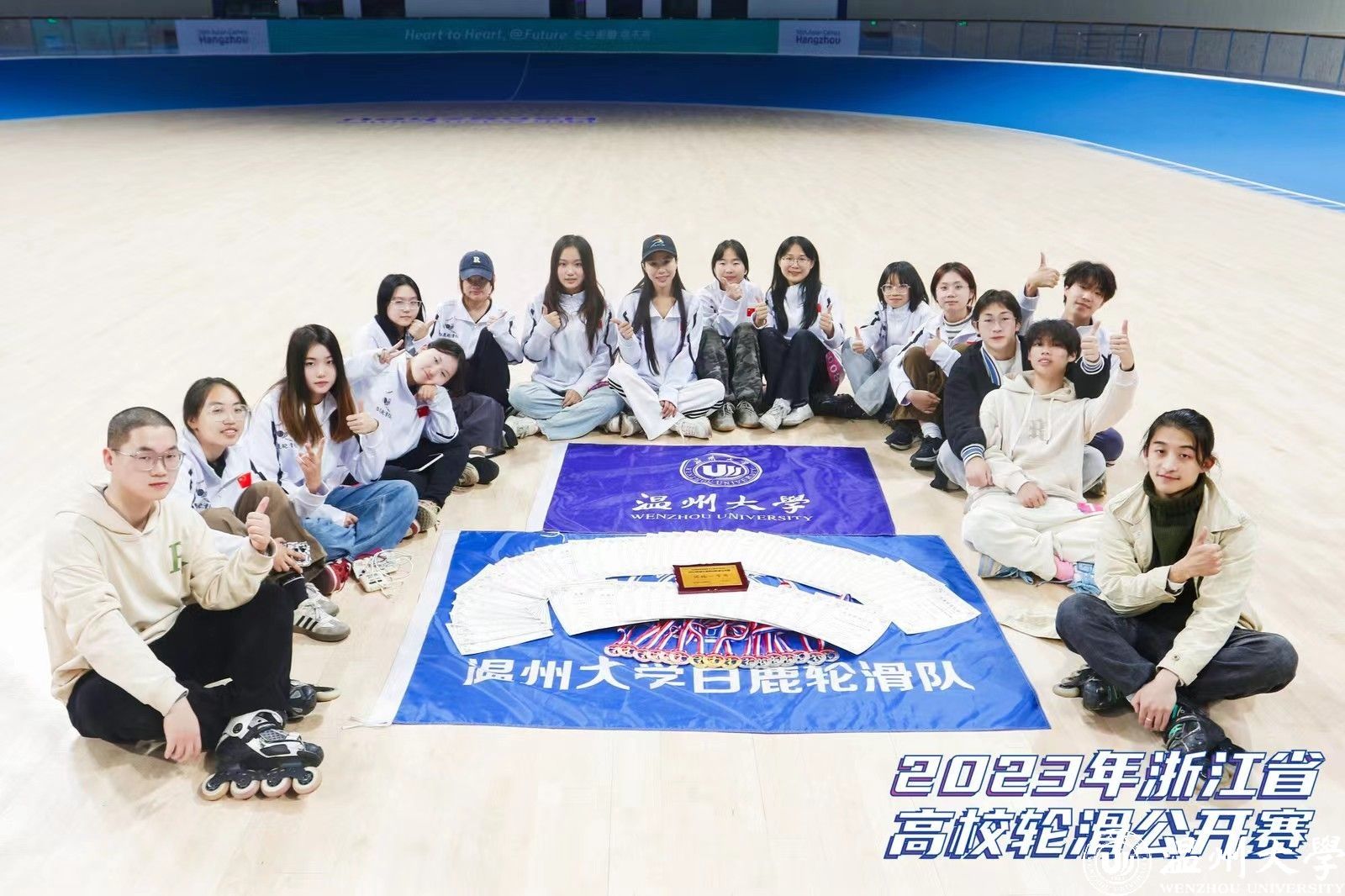 “全民健身共享亚运 信心满怀齐奔共富”。12月9-10日,2023年浙江省高校轮滑公开赛在钱塘轮滑中心(亚运轮滑馆)举行,来自全省各地的16所高校参加本次比赛,国产自拍白鹿轮滑队经过激烈的竞争,荣获团体一等奖,斩获3金7银6铜佳绩。