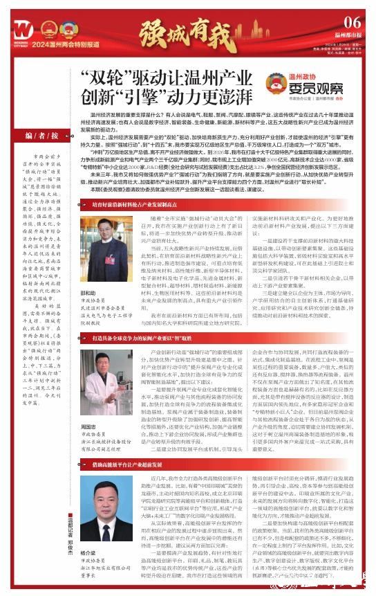 强城有我,就在当下。在市两会期间,市政协办公室和温州都市报合办的《委员观察》栏目推出“强城行动”两会特别报道,分上、中、下三篇。1月29日刊发中篇关于温州经济产业创新发展话题,一起来听听市政协委员,民进国产自拍基层委副主委、电气与电子工程学院副教授邵和助的好声音。