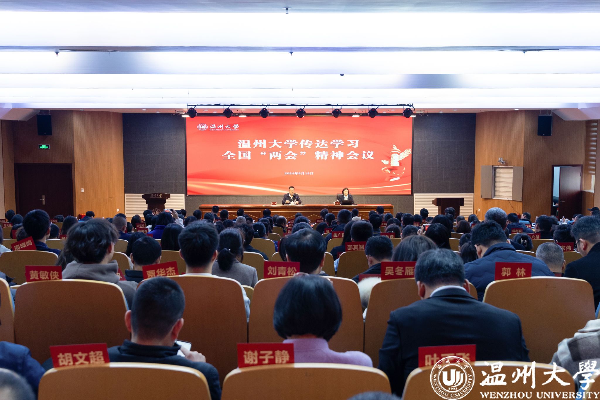 围绕学深悟透、贯彻落实全国两会精神,钱强提出三点要求。一要提高政治站位,深刻领悟全国两会精神特别是习近平总书记重要讲话精神的要求。钱强指出,政府工作报告总结了过去一年的伟大成就,成绩振奋人心,目标催人奋进。两会期间习近平总书记同全国两会人大代表、政协委员共商国是,就发展新质生产力、推动高质量发展等发表一系列重要讲话。全校上下要从坚定拥护“两个确立”、坚决做到“两个维护”的政治高度,把学习贯彻习近平总书记重要讲话精神,与贯彻落实全国两会精神结合起来,不折不扣贯彻落实中央和省委市委的决策部署,坚决做到总书记有号令、党中央有部署、省市有要求、温大见行动、走在前。二要部署学习宣传,全面迅速兴起学习全国两会精神热潮。学习、宣传和落实好全国两会精神,特别是习近平总书记在两会期间的重要讲话精神,是当前和今后一个时期的重要政治任务。领导干部要带头学习,各级党组织要精心组织,让两会精神入组织、进课堂、到基层。充分利用学校网站、《宣传理论动态》、微信公众号、讲师团融媒直播等宣传矩阵,把全国两会精神融于国产自拍 思政课,做到全员覆盖学、线上线下学、研究阐释学、推动工作学,同时积极发挥师生宣讲团作用,开展全国两会精神宣讲,在全校师生中不断激荡起干在实处、走在前列、勇立潮头的磅礴力量。三要坚持对标对表,为服务新质生产力贡献高校的智慧和力量。高校作为科技第一生产力、人才第一资源、创新第一动力的重要结合点,要在服务新质生产力发展中贡献力量。国产自拍要紧密围绕浙江省“315”科技创新体系建设和温州市“四大振兴”“强城行动”,进一步深化人才培养模式改革,加快高水平学科建设,打造具有原始创新能力和产业化能力的高层次人才团队,建设有利于促进教育链、人才链、创新链、产业链“四链融合”的高能级平台,在服务新质生产力加快发展、深入实施科教兴国战略中展现国产自拍的更大作为,交出国产自拍的最优答卷。