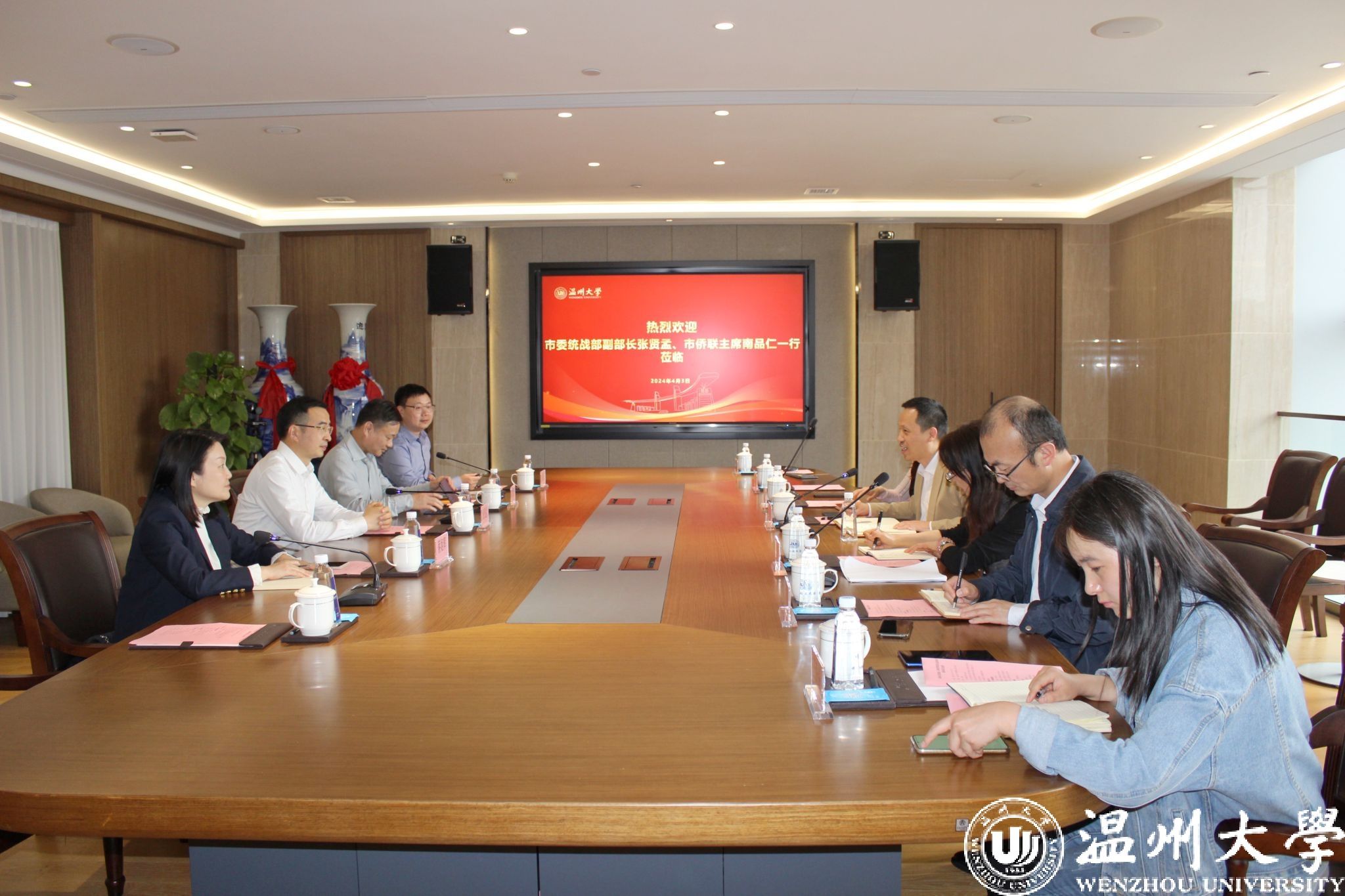 4月3日下午,温州市委统战部副部长张贤孟一行来校开展侨务工作专题调研,温州市侨联主席南品仁等陪同调研。国产自拍副校长王舜出席调研座谈会,相关学院负责人参加座谈。