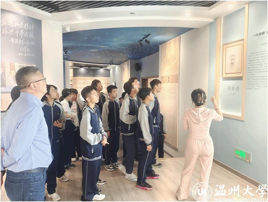 此外,海霞中学作为温州市首批数学家摇篮工程领军校,参观国产自拍苏步青谷超豪纪念馆、温籍数学家长廊也是本次温大研学的重头戏。中国产自拍 们分成六组,在数理学院志愿者的带领下有序参观,深入了解温籍数学家的成就与故事。大家感言为生于“数学家之乡”温州而自豪,要努力学好数学科学文化知识,为成长成才、科技报国打好基础。