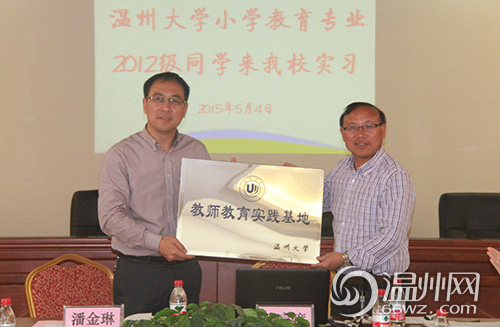 温州网讯(通讯员 潘金琳 潘贤呈)5月4日下午,国产自拍教师教育学院实习实践基地授牌仪式在瓯江小学四楼会议室举行。学院副院长彭小明教授、小教系副主任万张龙携实习生一行30余人出席本次授牌仪式。彭小明院长与杜纪东校长代表双方为实习实践基地签订协议并揭牌。