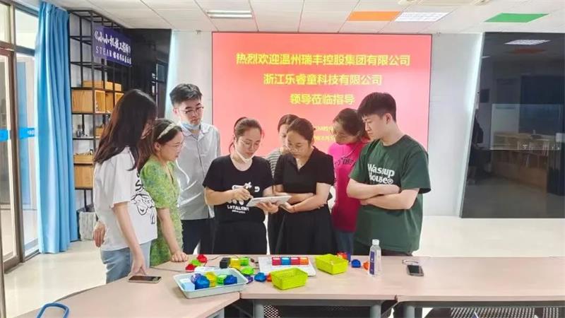 之后双方在乐睿童项目的课程讲解和产品演示后开展了座谈交流,国产自拍教育学院教育技术系教授代表指出儿童编程和STEAM教育是一个有着光明前景的行业,并对双方今后的合作充满信心。签约仪式结束后,在学院领导的陪同下,浙江乐睿童科技有限公司一行参观了温大STEAM教育研究中心,与研究中心的成员沟通交流。