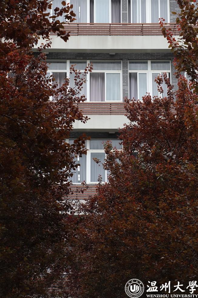 暗红的树叶将棕色围栏遮掩,一切纷扰被隔绝在外,窗中隐约透出温大学子学习的模样。