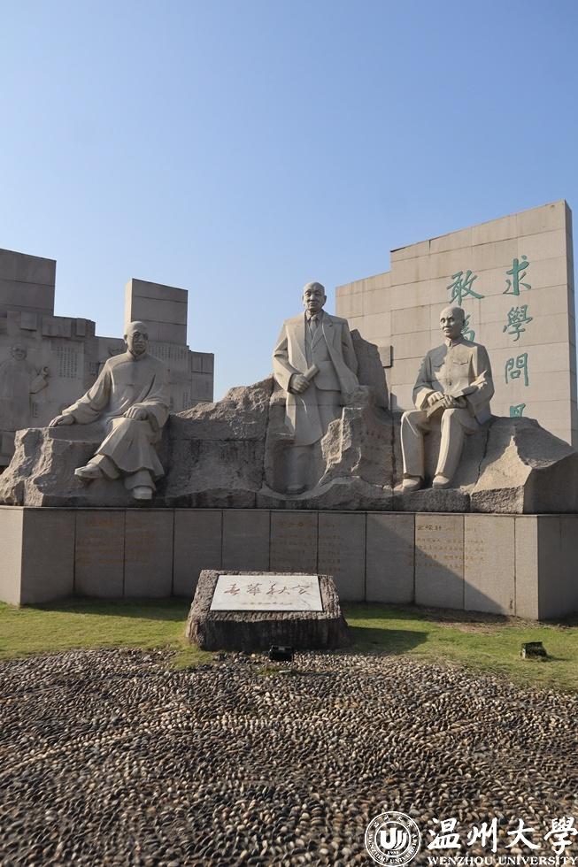 名人雕像庄严肃穆,醒目的校训在石壁上印刻,“求学问是,敢为人先”,为温大人指引前进的方向。