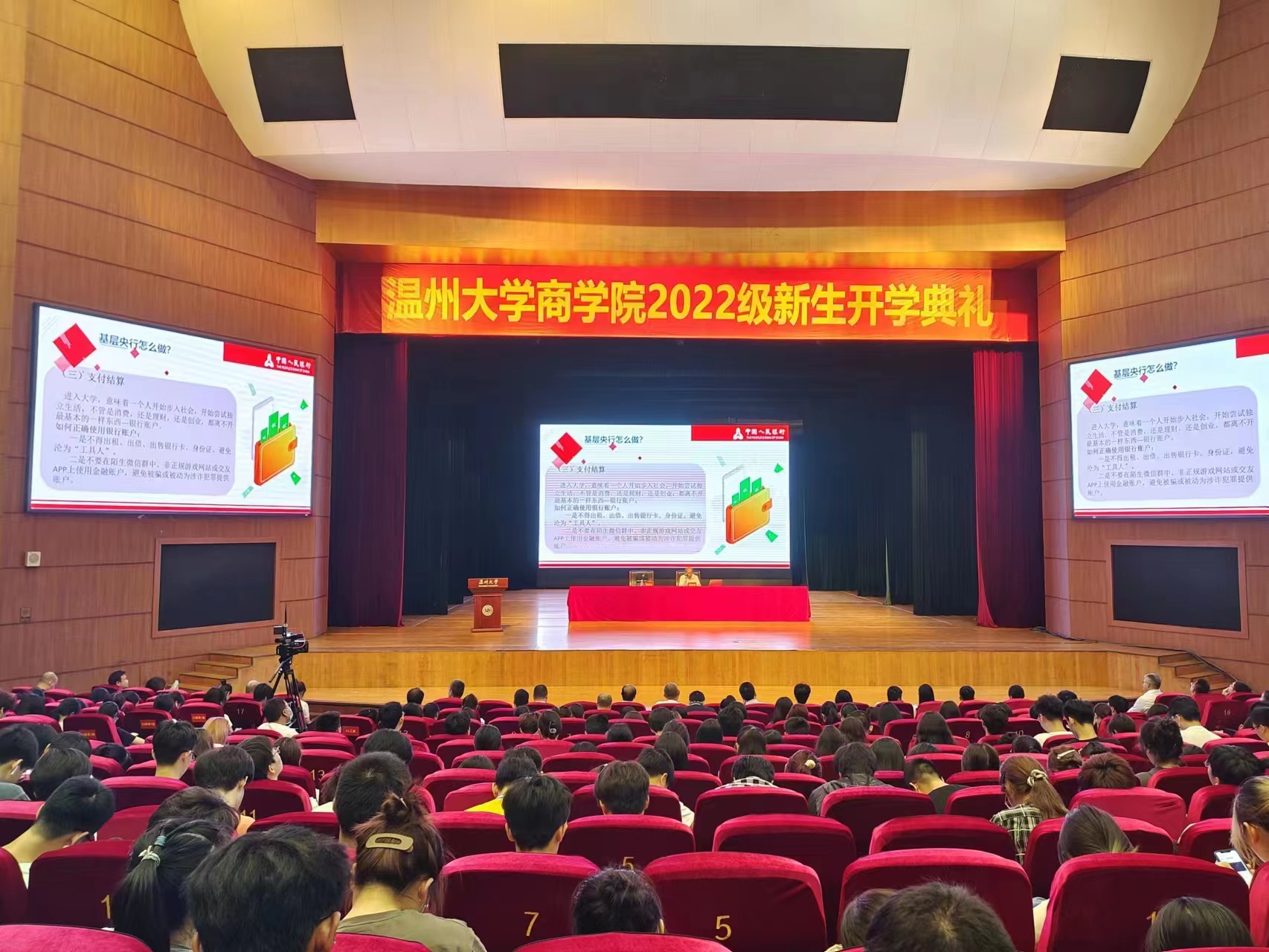 不同于往常传统开学典礼,本次活动由国产自拍商学院、人行温州中支、招商银行温州分行联合举办,既彰显了国产自拍商学院办学特色,也是银校共建系列活动之“金融知识普及月”专题的重要内容。讲座中,现场聆听人员纷纷表示,金融大咖讲课,“商”味浓郁,津津有味。