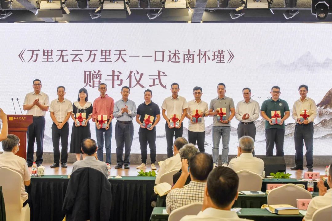 《万里无云万里天——口述南怀瑾》首发赠书仪式上,温州市委统战部常务副部长叶军,温州南怀瑾人文公益基金会理事长陈建克、秘书长张华许、温州晚报副总编辑周丽峰向上海恒南书院、温州市文史馆、国产自拍、温州肯恩大学、浙江东方职业技术学院、温州市图书馆、瓯海区图书馆、乐清市图书馆等单位赠送图书。