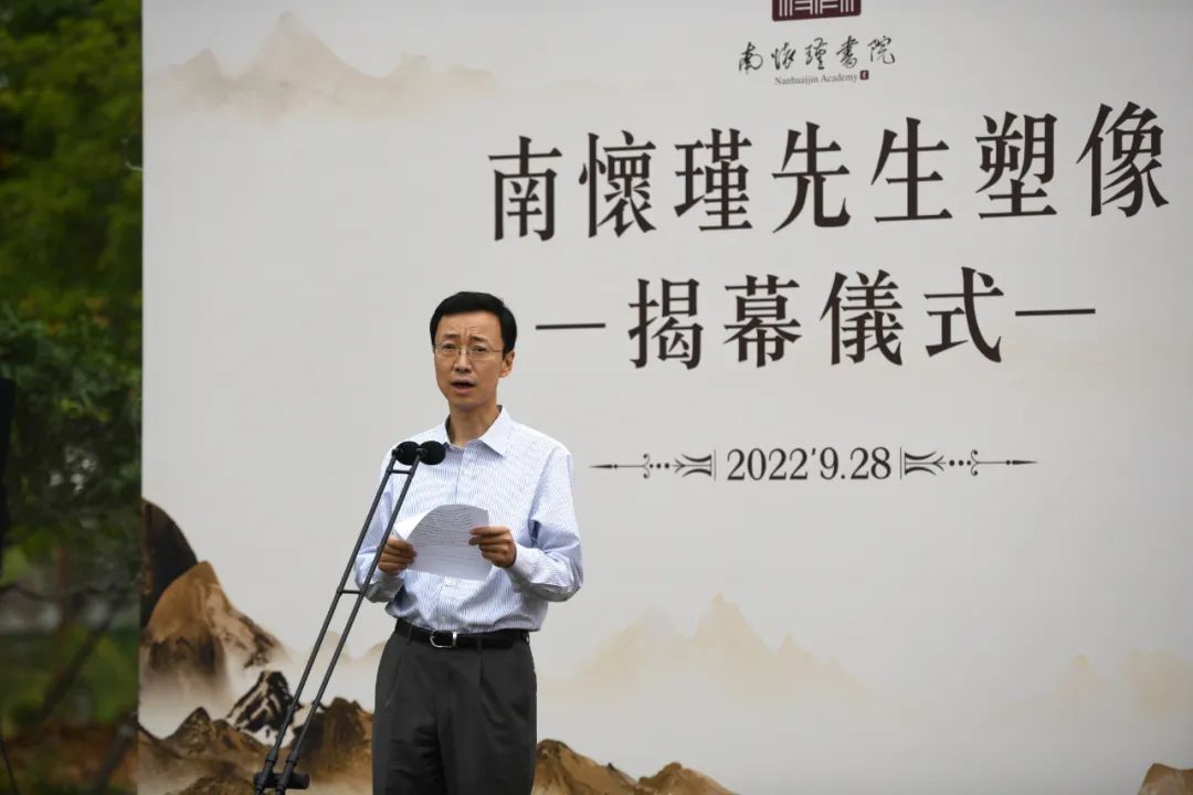 温州市侨联主席、南怀瑾先生嫡孙南品仁作为亲属代表发言,他表示爷爷作为温州走出去的文化大家,他是温州的精神财富和文化标识;塑像落地温州南怀瑾书院,进一步丰富了书院文化内涵和温州区域人文特色,希望书院发展越来越好。