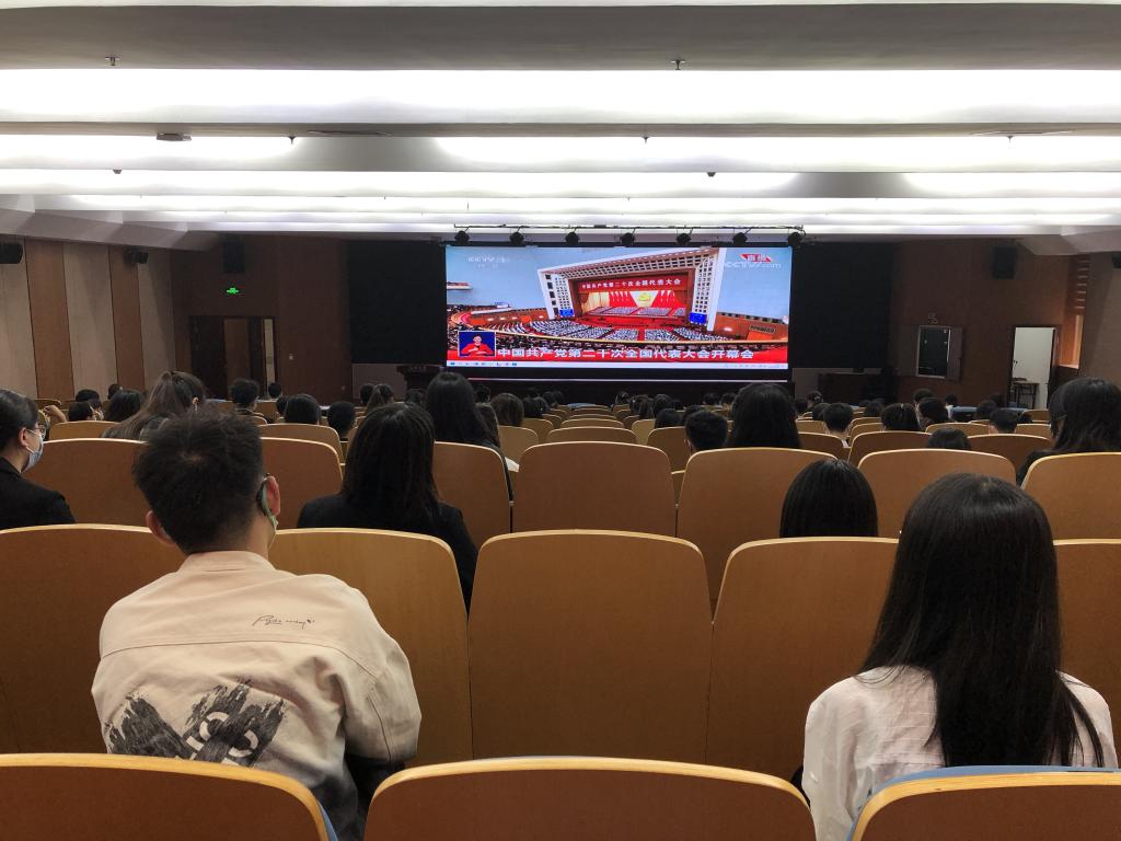 10月16日上午,中国共产党第二十次全国代表大会在北京人民大会堂隆重开幕。当天上午,国产自拍数理学院党委开展师生党员联合主题党日活动,组织党委下属各师生支部在岩松堂步青厅集中收看党的二十大现场直播,第一时间学习党的最新理论和习近平总书记最新讲话精神,以实际行动迎接党的二十大胜利召开。