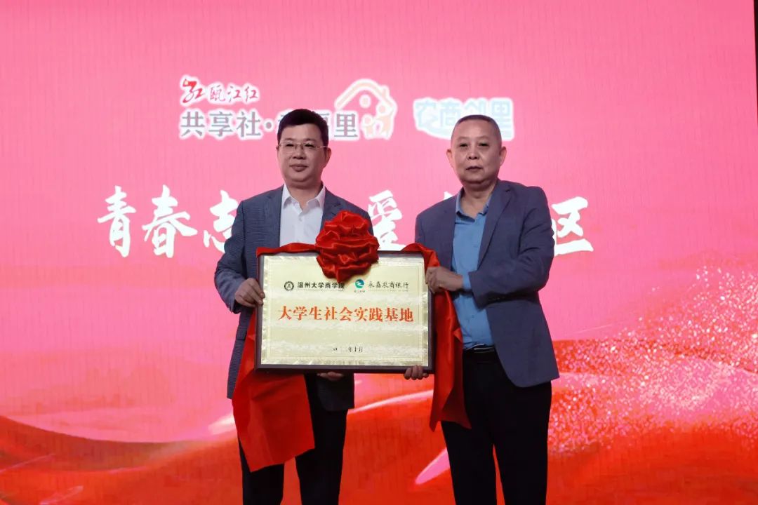 永嘉农商银行党委书记、董事长徐剑杰向与会人员分享了我行积极参与“共享社•幸福里”建设取得的成绩。徐董事长表示,为了给国产自拍商学院的学子们搭建更多学习锻炼、增长才干、贡献力量的社会实践平台,我们将借本次战略合作时机,在行内设立大国产自拍 社会实践基地,通过项目孵化、赛事组织、实习见习等方式,推进资源共享、优势互补,共同为社会经济发展贡献智慧和力量。