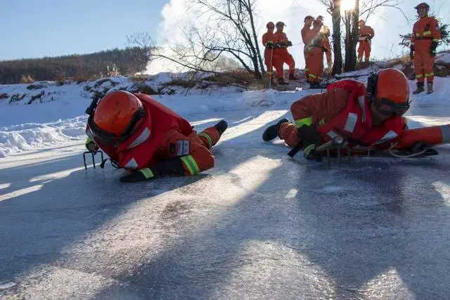 在我国北部地区常发生冰域事故,为此今年消防部门特此将冰域救援作为重点培训项目,于辽宁成立了全国冰域救援培训基地。