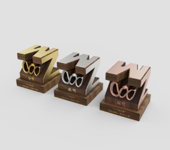 同时,为了突出温州作为历史上的“百工之乡”、非遗传承的魅力文化之都的特色,邓亮及其团队还在奖杯、证书的设计元素中加入诸多温州非遗元素。例如,今年的奖杯结合了温州传统工艺美术元素,以“温州”英文首字母“WZ”为造型元素,采用胡桃木立体镂雕工艺,并结合精雕铝氧化金属贴片镶嵌,增加了整体材质的丰富性和层次性。奖杯底部融入“木活字”非遗元素,获奖选手可以亲自拓印证书,使奖杯突破了传统摆设的单一属性,增加了新鲜互动体验。