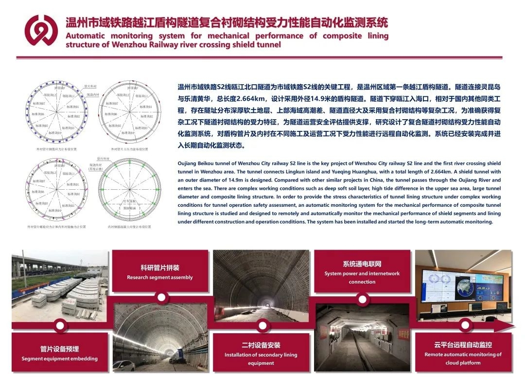 ▲温州市域铁路越江隧道复合衬砌结构受力性能自动化监测系统