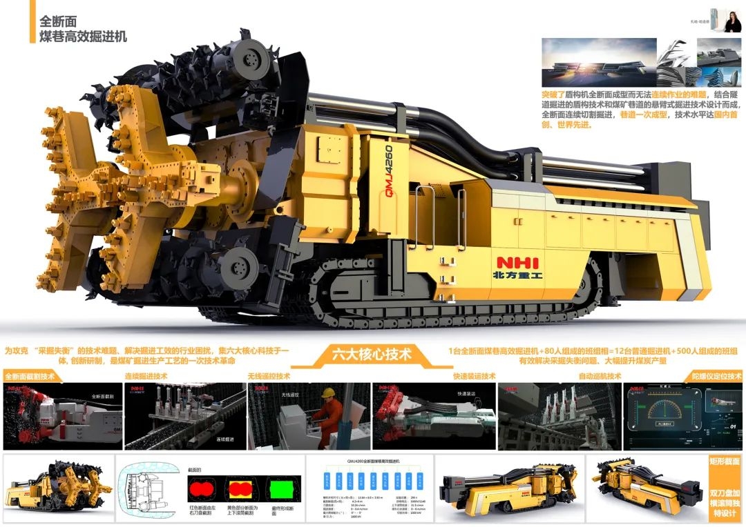 ▲全断面煤巷高效掘进机