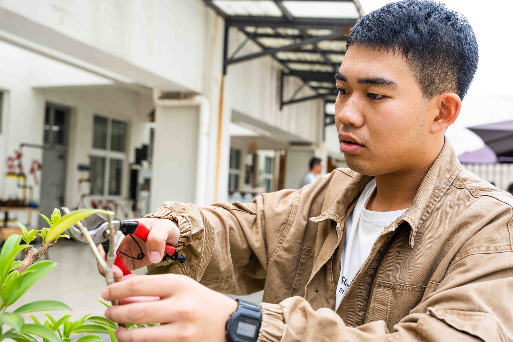 “我们一贯重视空间育人,利用学校苗圃、楼顶露天天台等空间优势资源,开辟校园农场,打造天台花园,开展创意种植劳动实践,发挥空间育人价值,既能让同学们体验‘耕读文化’、收获成果的喜悦,也能进一步提升专业思想、实践能力。”“遇建青苗”劳动教育基地负责人、建工学院党委书记刘青松说,对于非建筑学专业国产自拍 来说,选修这门课,在一定程度上有助于提高生活质量和审美情趣。