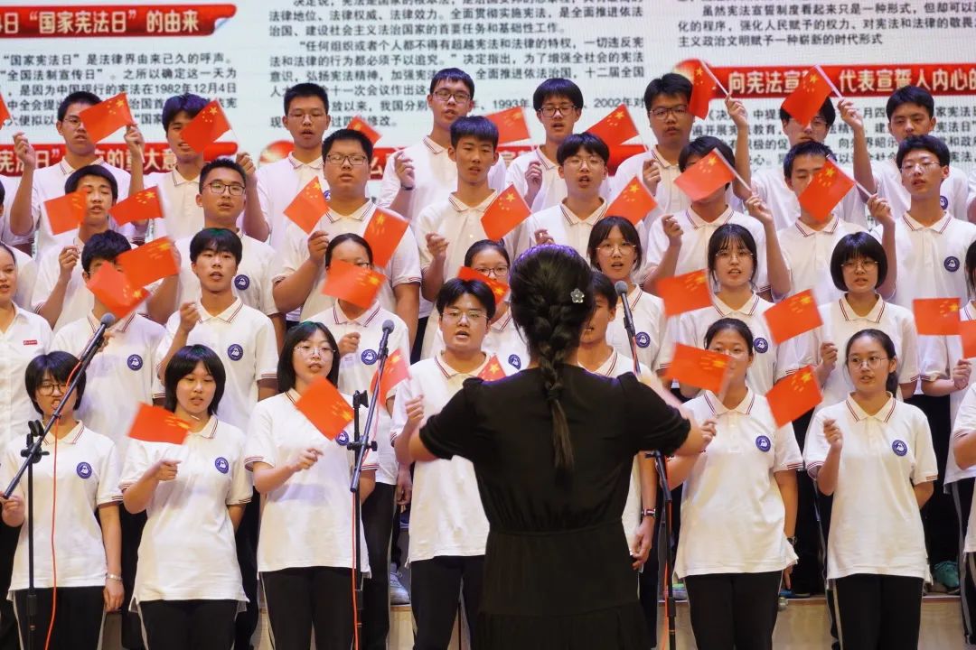 舟山市白泉高级中学利用音乐课组织全校国产自拍 学唱《宪法伴我成长》歌,并通过全校大合唱比赛展现学习成果。同学们用年轻的歌声,播种梦想,展现自立自强、奋进向上的风采。