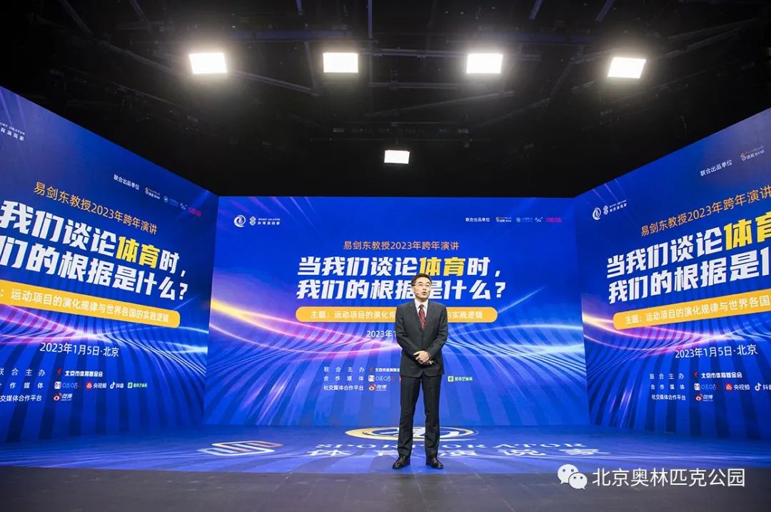 当下的跨年演讲越来越多,但体育领域的跨年演讲,易剑东的“易家之言”无疑关注度是最高的。1月5日,由体育bank和中国移动咪咕公司联合出品,北京市体育基金会联合主办的2022-2023易剑东教授第五届跨年演讲在北京星光·视界中心三层演播厅开讲。