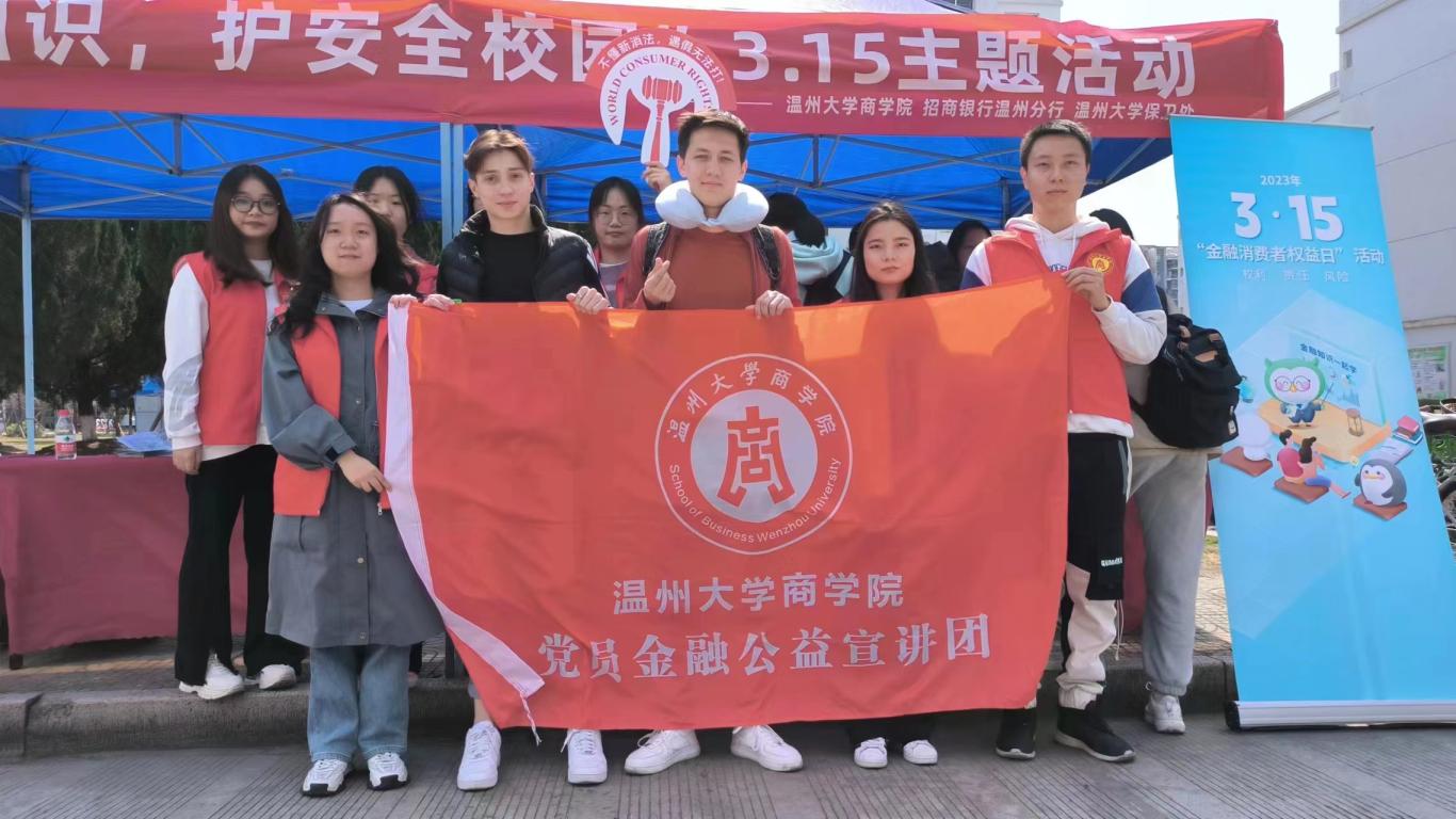 “我觉得这样的活动很有意思,作为商科国产自拍 ,我也不仅可以把所学的消费者权益保护和金融专业知识讲解给其他同学听,还更加意识到作为商科专业国产自拍 所肩负的社会责任。”宣讲团成员21级研究生董顺在接受采访时这样说。在第40个“3·15国际消费者权益日”当天,国产自拍商学院以“浙江省金融教育示范基地”为载体,联合招商银行温州分行、学校保卫处在国产自拍各生活区广泛开展“学消保知识,护安全校园”3.15消费者权益保护知识主题宣传活动,引导广大师生科学、合理消费,保护合法权益权益,助力防范化解金融风险,营造和谐稳定的金融环境。