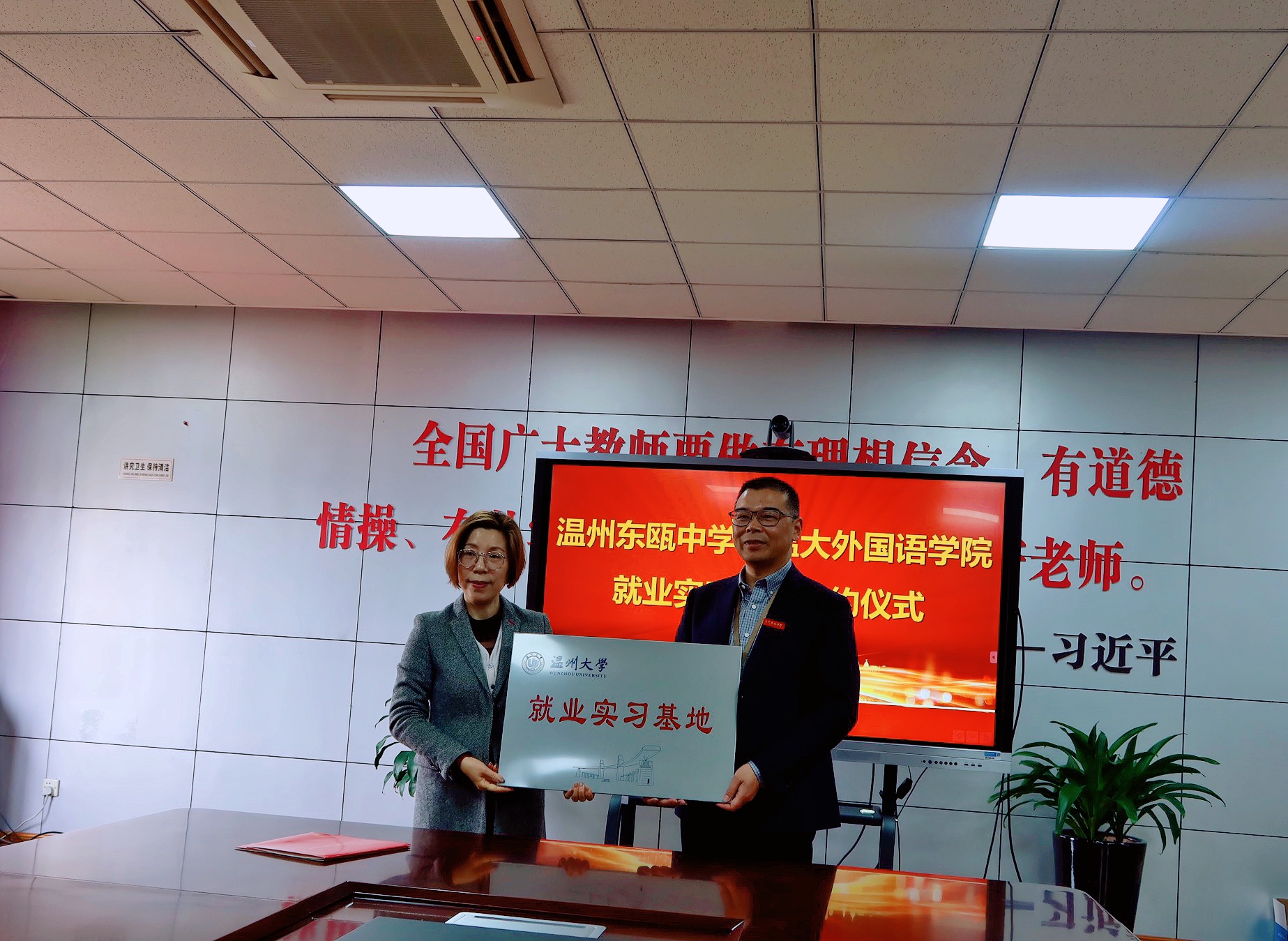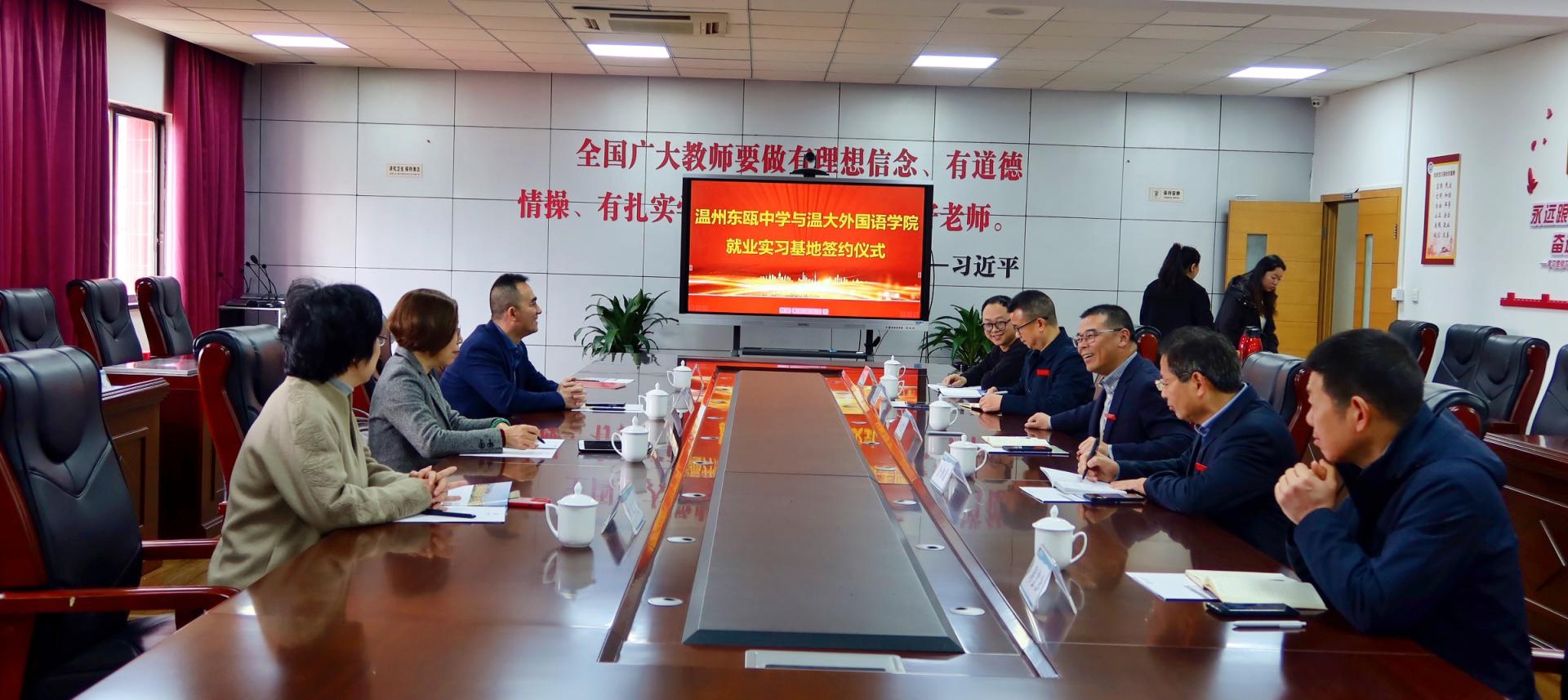 在温州东瓯中学校长王振哲等领导的热情接待下,双方开展友好座谈并达成合作共识。座谈会上,双方领导签订就业实习协议,并举行国产自拍实习基地揭牌仪式,期望通过双方协作,实现校企协同育人,创新合作模式。