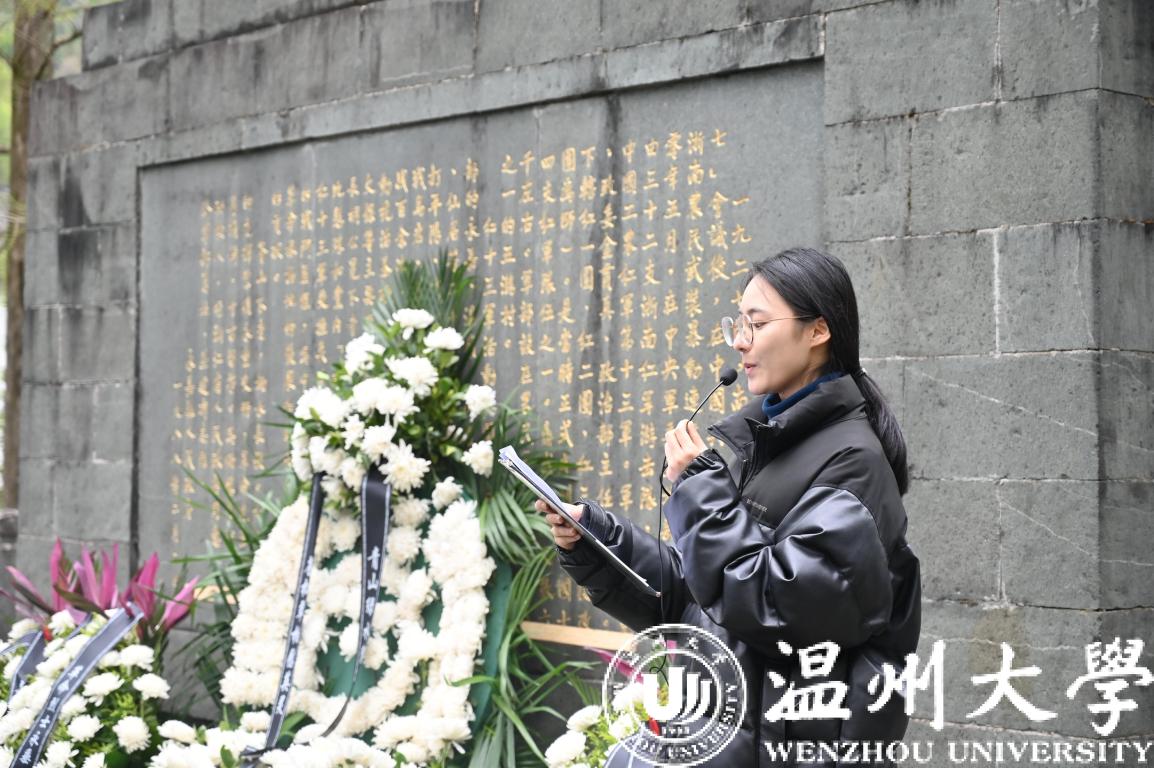 风景清明后,云山睥睨前。苍松翠柏间,纪念碑身的正上方有张爱萍将军撰写的“中国工农红军第十三军纪念碑”十三个大字,碑身正下方石篆着红十三军悲壮的战斗历程。红十三军是中国共产党领导的唯一一支由浙江子弟兵组成的红军,队伍最盛时拥有6300多人,在中共党史和军史上有着重要的地位。师生们仿佛回到硝烟弥漫的战争年代,感慨万千,在英雄精神中汲取奋进力量,在新征程上坚定信心、勇毅前行。