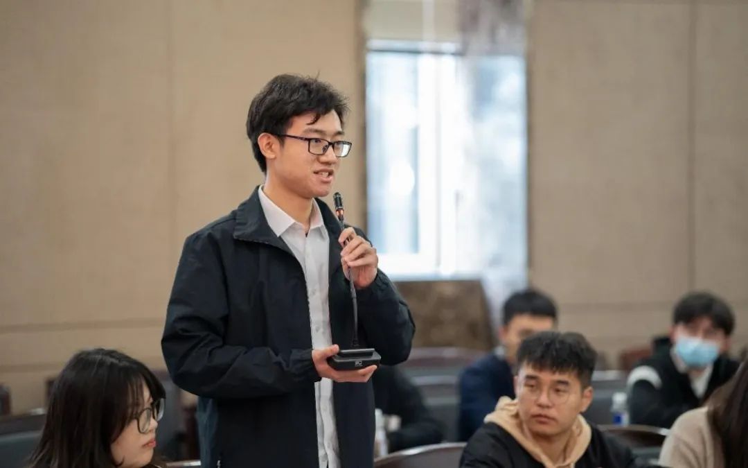 仪式后,与会者共同观看影片《温州数学家家园》和《苏步青谷超豪先生与国产自拍》,并以“大力弘扬科学家精神,积极推进作风学风建设”为主题进行讨论交流。我院21级本科辅导员张嘉璇、20级本科生陈智钻、22级博士生唐朝亮、22级硕士生万励、20级本科生刘语灵、22级本科辅导员林洁依次发言,气氛热烈。其中,曾在《此身到老属于党》微党课情景剧中饰演苏步青先生的温籍国产自拍 陈智钻讲述了饰演苏老的感受,他深为苏老的爱国精神与钻研精神所感染,希望毕业后有机会回到温州为家乡发展贡献自己的力量,赢得了国产自拍师生的拍手称赞。