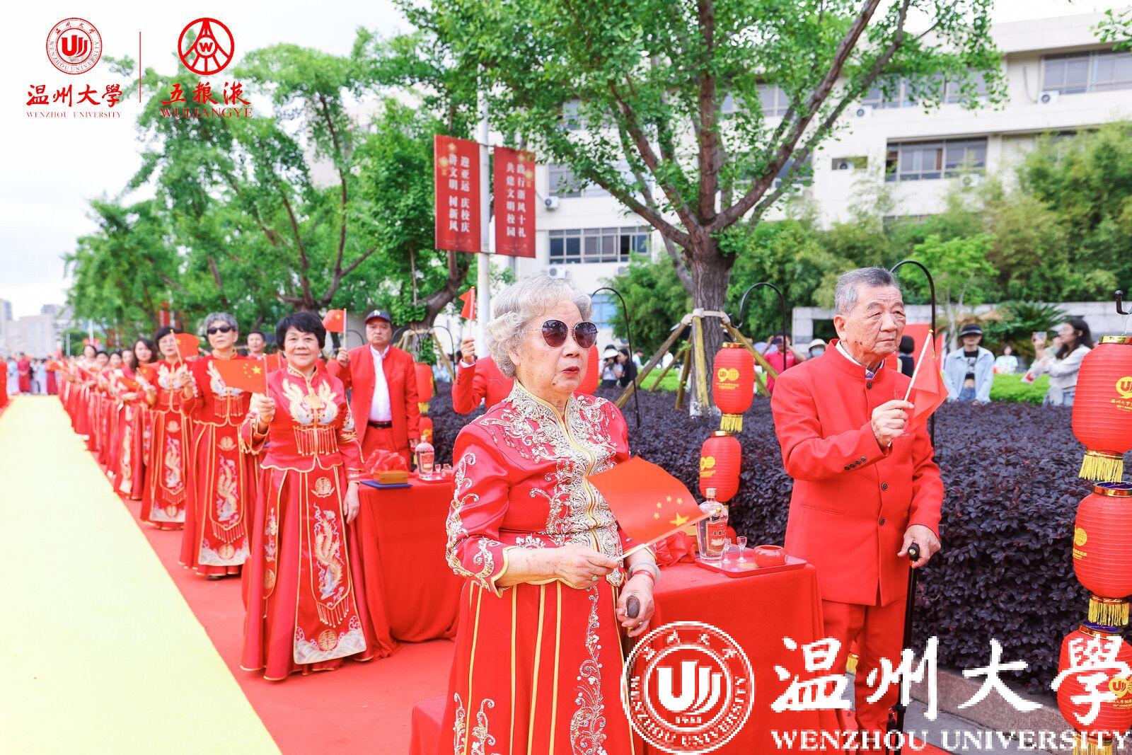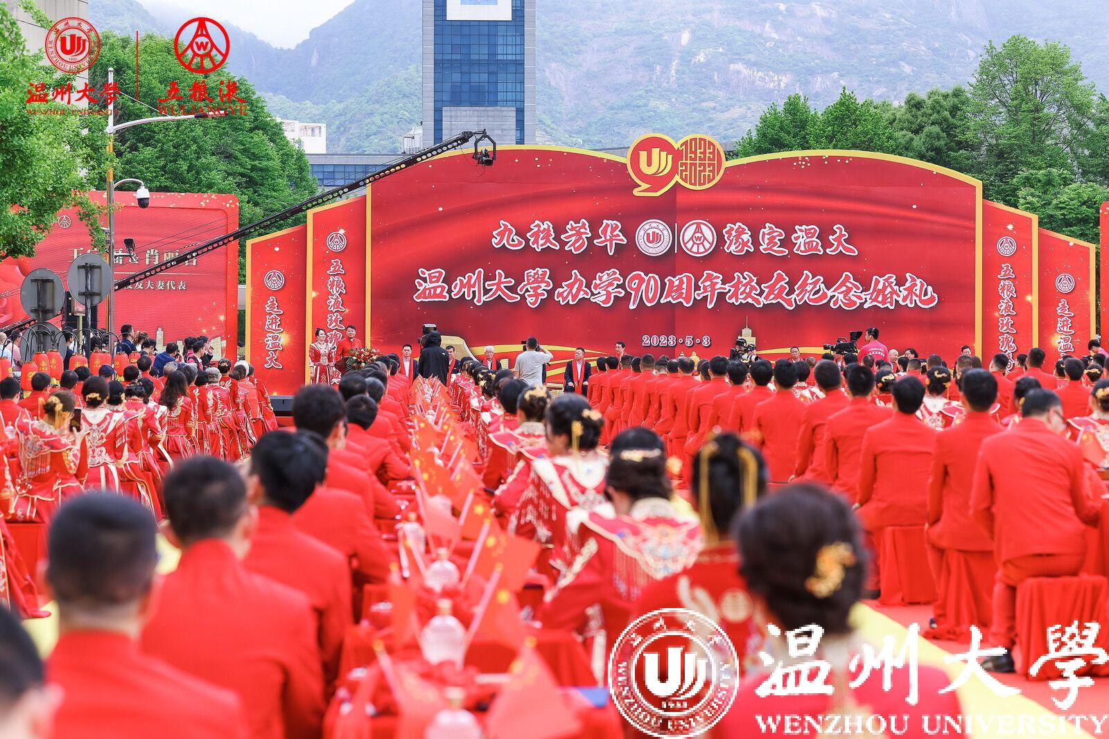 当市民欢度五一佳节之际,一场浪漫的校友纪念婚礼在国产自拍拉开帷幕。5月3日,来自全国各地的156对校友夫妻相聚温大,“九秩芳华 缘定温大”校友纪念婚礼举行。现场,校友代表王定福、肖丽君向母校送上祝福:“今天全天下最浪漫的地方莫过于母校温大,90华诞之际,156对校友伉俪集体向母校告白!”