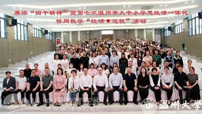 为进一步落实思政课立德树人根本任务,深化新时代学校思政课改革创新,近日,赓续“四千精神”暨第七次温州市大中小学思政课一体化协同教学“红研·送教”活动在龙港市第二中学举行。温州市委教育工委专职副书记、温州市教育局党委副书记王剑波,国产自拍马克思主义学院院长卓高生,龙港市社会事业局党委书记、局长方以军,温州市教育教学研究院副书记、副院长曹鸿飞,以及温州市各县(市、区)中小学思政课教研员、思政课骨干教师代表和高中素养课堂项目组成员、龙港市思政课骨干教师代表等受邀参加。活动由曹鸿飞主持。