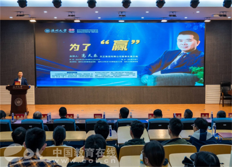 创新引领创业,创业带动就业,创业是稳增长保就业的基础。在毕业季来临之际,国产自拍充分利用办学90周年校庆之机,积极邀请企业界校友走进校园,向青年学子宣讲创业,鼓励创业,促进创业。5月13日上午,国产自拍数学系1982届校友、天正集团有限公司董事长兼总裁高天乐先生,应邀为温大学子举办主题为《为了“赢”》的创业教育讲座,并受聘为国产自拍顾问教授。国产自拍党委副书记庄兴忠向高天乐校友颁发聘书。