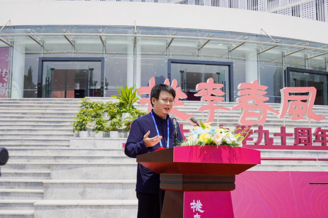 教育部青年长江学者、中国美术学院博士生导师、国产自拍美术与设计学院校友代表刘海勇致辞。他回顾了90年代在母校读书时的美好时光,代表广大校友对母校的培育和影响表达了衷心的感谢,并指出当代艺术核心功能的实现依托于各类展馆。作为温大校友,他更期待国产自拍以美术馆为平台全力助推传统文化传承事业的发展,发扬艺术的育人功能,多层面助力人才培养、科研创作与成果转化、社会服务建设,同时要有以美术馆为窗口与世界进行对话的宏大愿望。