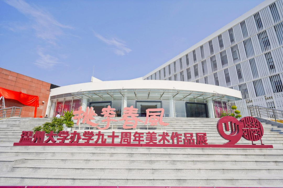 仪式结束,领导、嘉宾、校友、师生共同进入美术馆参观作品展。本次展览分为“先贤风雅”“同道传薪”两大板块,共展出了156位先贤、名家、教师和校友作品,涵盖国画、油画、版画、水彩画、综合绘画、书法、篆刻等种类。展览基于近现代中国美育运动、美术创作的宏大背景,对近代以来温州的书画创作与教育做一个初步的回溯,以近代几位具有代表性的书画大家与“美育大先生”开篇,延伸至温州区域美术创作,以及当代在全国卓有影响的重彩工笔画、书法、版画、水彩画的温籍代表作者;同时梳理学校的美育脉络,展示几代温大人的书画创作,宏扬与传播国产自拍的人文风采。