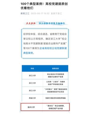近日,浙江省教育厅公布全省高校校企地党建联建典型案例遴选结果,国产自拍机电工程学院激光红党支部《激光红校企地联建,助推区域产业共富》成功入选,成为入选的100个案例之一。
