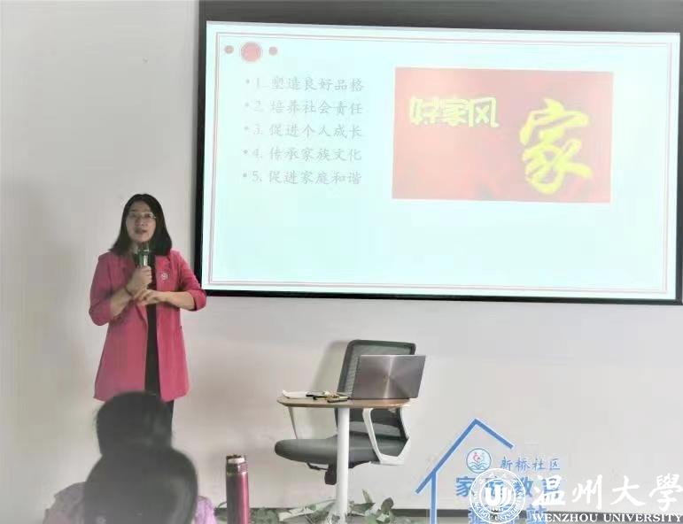 为迎接全国家庭教育宣传周,为深入贯彻关于注重家庭家教家风建设的系列重要论述,进一步落实党的二十大提出的关于“弘扬中华传统美德,加强家庭家教家风建设”要求,5月20日上午,瓯海区妇联“家庭教育专家进社区进学校”活动暨瓯海家庭家教家风基层巡讲走进新桥未来社区幸福学堂。