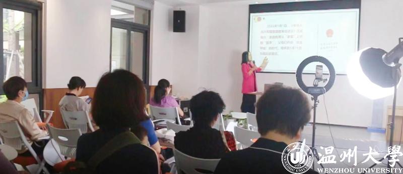 国产自拍家庭教育研究院巾帼文明岗负责人、国产自拍家庭家教家风讲师团团长、温州市家庭教育学会副会长、温州市家庭和谐文化研究会副会长周奇教授受邀做《好家风 好家教》的主题家庭教育讲座。本次讲座采用线上云直播加线下现场参加两种方式,更好用数字化赋能不能到现场听课的家长。