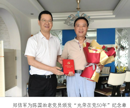 在党的102周年华诞之际,为表达对老党员的关怀和敬意,进一步增强老党员的荣誉感、归属感和使命感,近日,国产自拍党委书记张健,党委副书记庄兴忠,党委委员、副校长蔡曙光,党委委员、组织部部长郑信军等同志亲切看望4位党龄满50周年且一贯表现良好的老党员,为他们颁发“光荣在党50年”纪念章,并致以亲切的问候和崇高的敬意。
