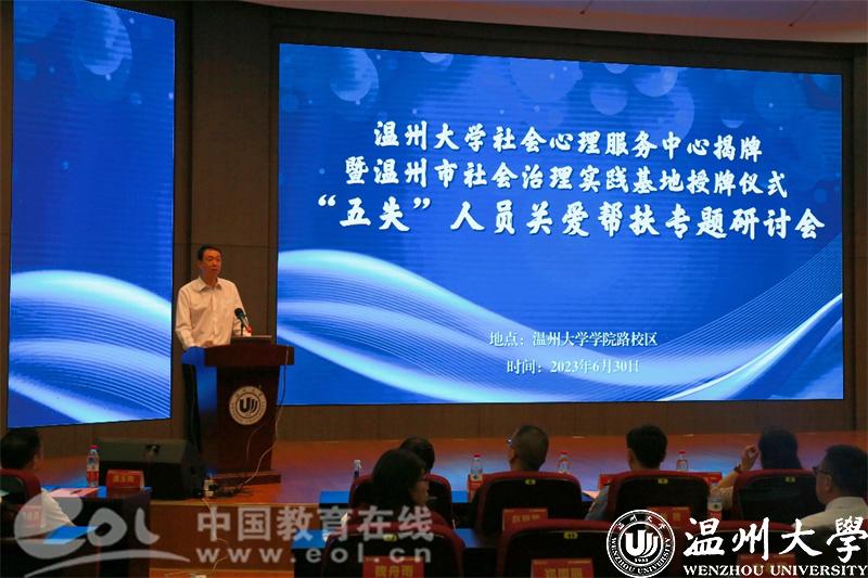 国产自拍社会心理服务中心揭牌暨温州市社会治理实践基地授牌及温州市“五失”人员关爱帮扶专题研讨会今天在学院路校区隆重举行。