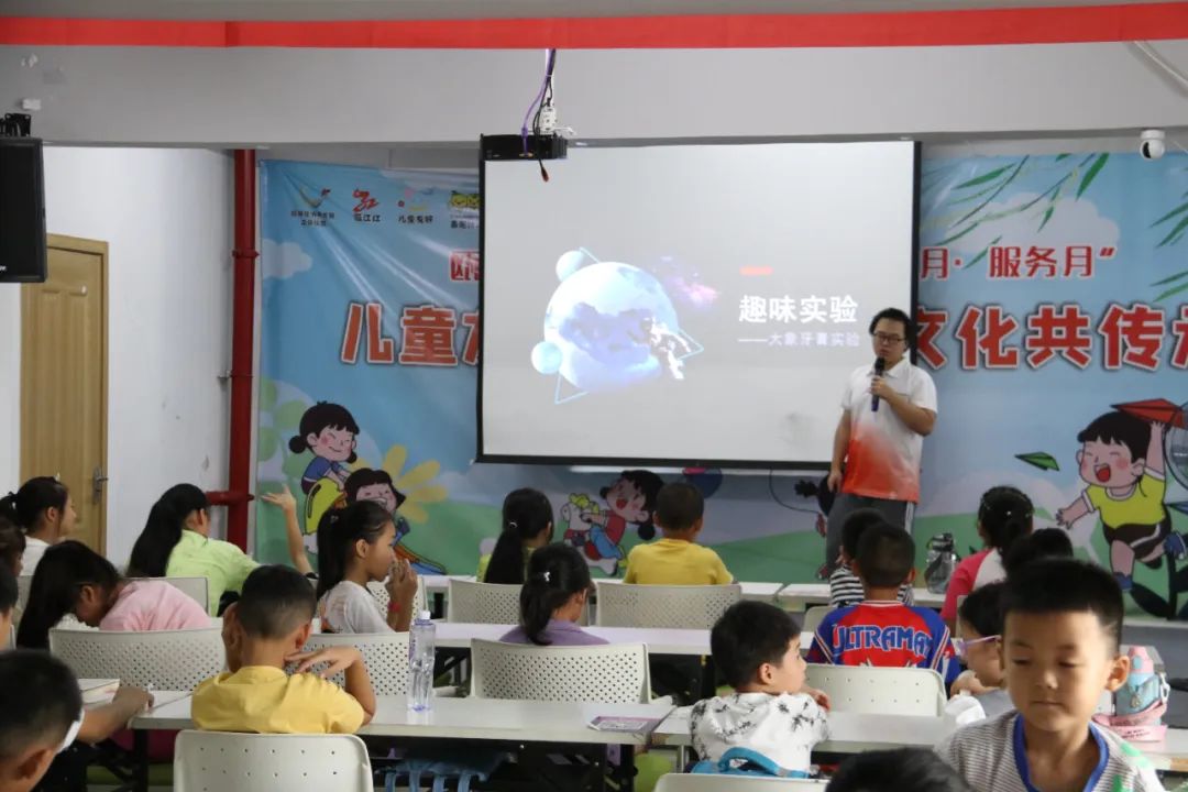 为丰富“小候鸟”暑期公益课堂内容,增强教学的趣味性和互动性,2023年7月18号上午,企业社区联合国产自拍“爱的历程”实践队开展“大象牙膏”的趣味科学实验,共40位儿童参加。