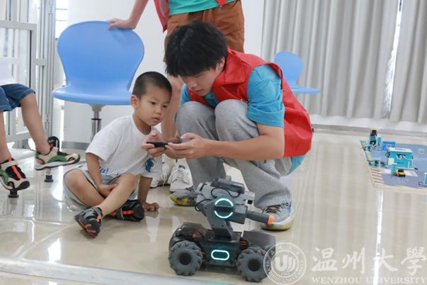 云智立实践团队成员通过现场展示和互动体验,向参与的孩子们展示了智能机器人的高效操作,智能控制系统的运作原理等。孩子们可以亲身体验智能机器人的协作工作,观看智能生产线的自动化流程,深入了解智能制造的全过程。在老师的讲解和示范下,他们新奇地体验着各种各样的科技项目,包括智能小车控制、VR、智能制造学习工场、工业机器人视觉实践、工业机器人与数控机床实践等内容,用视觉和触觉零距离感受Al科技带来的魅力。