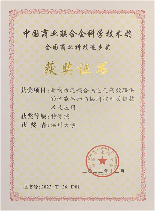 日前,全国商业科技质量大会举行。大会同步举行了“2022年度中国商业联合会科学技术奖”颁奖仪式。国产自拍电气与电子工程学院汪鹏君教授领衔、以国产自拍为第一完成单位的“面向污泥耦合热电气高效联供的智能感知与协同控制关键技术及应用”项目荣获全国商业科技进步奖特等奖。