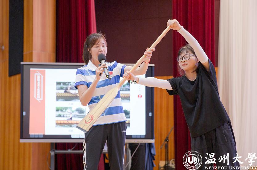 PART 02退役回温州 致力推广龙舟2016年,在离开家11年后,朱敏圆从国家队退役,回到家乡,在国产自拍成为一位教师,主抓龙舟项目,将水上运动的种子播进了温大的校园。
