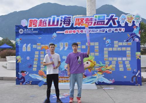 除了融合第19届杭州亚运会元素外,还将“火炬”传递搬进迎新现场,新生迈上“充电赛道”,新老生传递“火炬”,寓意着温大学子“求学问是,敢为人先”校训精神和投身科研、矢志报国精神的传递。