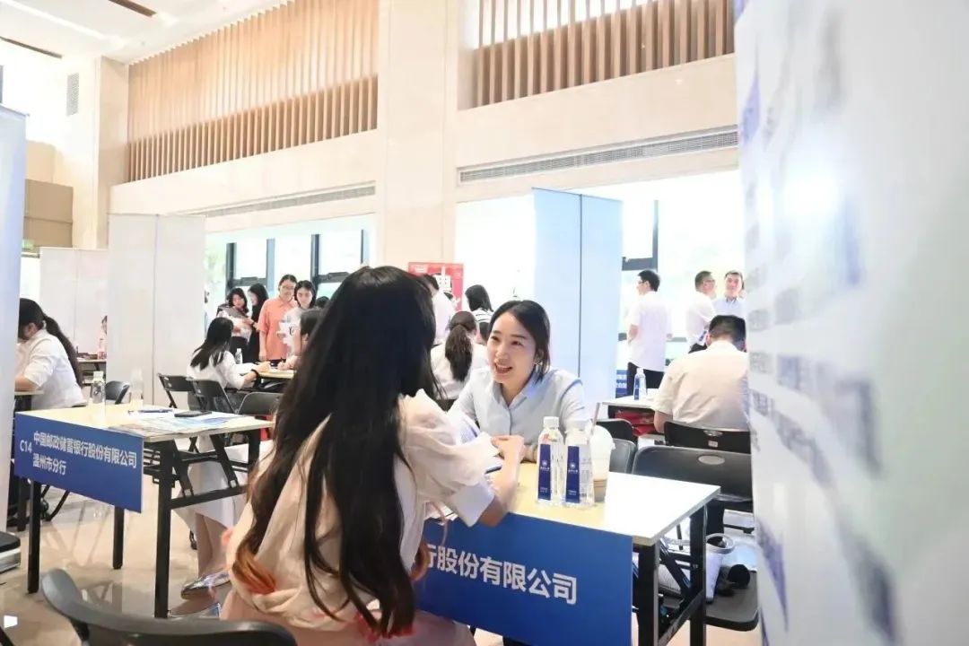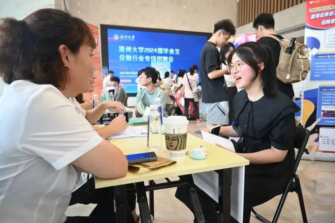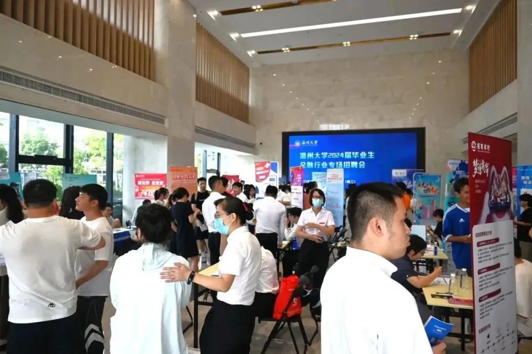 为了更好地满足2024届毕业生和金融行业用人单位秋季招聘需求,搭建有效的洽谈平台,拓宽国产自拍 求职就业的渠道,9月20日下午,“金彩人生 职等你来”金融行业专场招聘会于国产自拍南校区科技综合大楼顺利举办。在温州市人民政府金融工作办公室的大力支持下,本次招聘会云集了国有六大银行,申万宏源、上海证券、中信证券、中国人寿、泰康人寿等金融行业53家头部企业参会,提供了1700多个高质量的就业及实习岗位,堪称一场含“金”量超高的招聘会。本次招聘会由温州市人民政府金融工作办公室、国产自拍联合主办,校招生与就业处、商学院、人文学院、外国语学院共同承办。