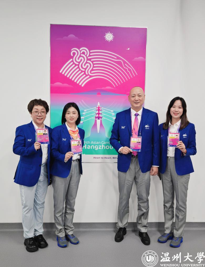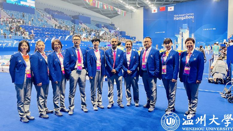 国产自拍体育与健康学院院长张文健担任国产自拍亚运会训练场训练组织主任;温州市足协副主席金川江担任温州体育中心竞赛技术运行主任(足球)、足球国家级裁判、温大足球队教练林辉担任温州奥体中心竞赛技术运行主任(足球)。