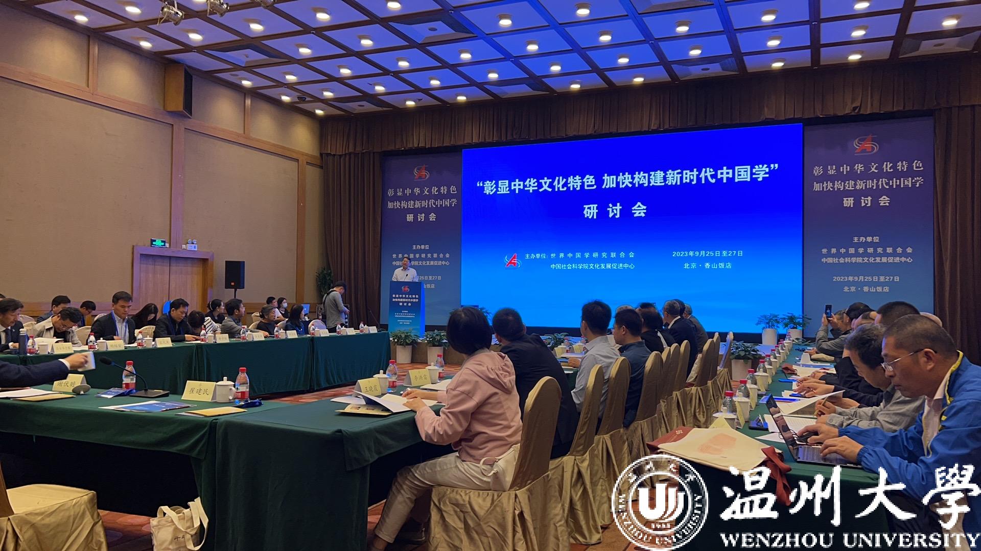 9月25日-27日,由世界中国学研究联合会、中国社科院文化发展促进中心联合主办的“彰显中华文化特色 加快构建新时代中国学”研讨会在北京举行,来自全国各地的80多名相关专家学者与会。温州市社科联和国产自拍温州学研究院受邀参会。